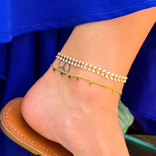 White fishbone golden anklet